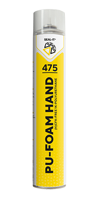 Seal-it® 475 PU-FOAM HAND é uma espuma de isolamento e montagem duradoura e de secagem rápida. Desenvolvida especificamente para vedar e preencher juntas, uniões e ligações, buracos e espaços de ajuste e montagem entre diversos componentes de construção.